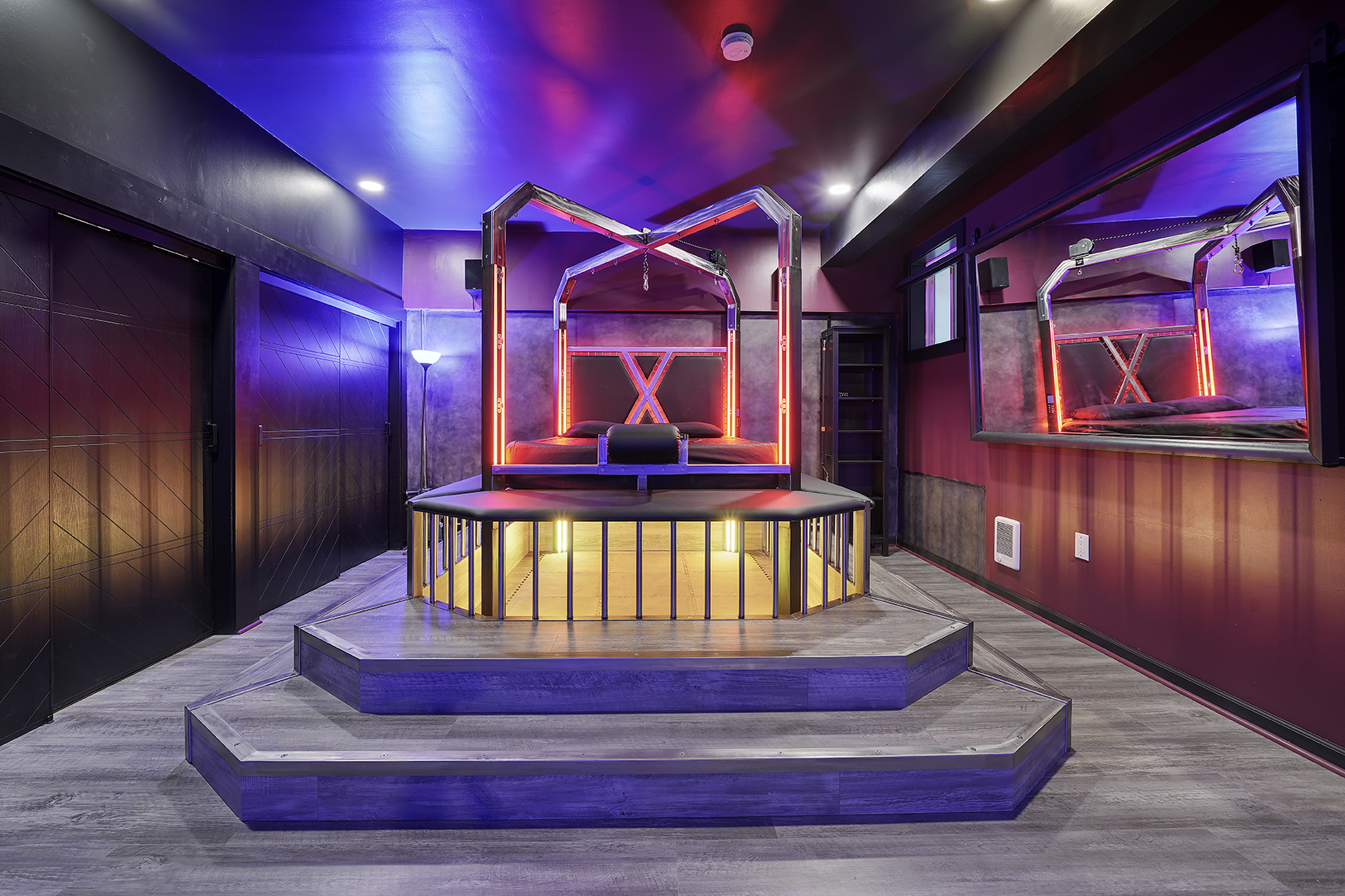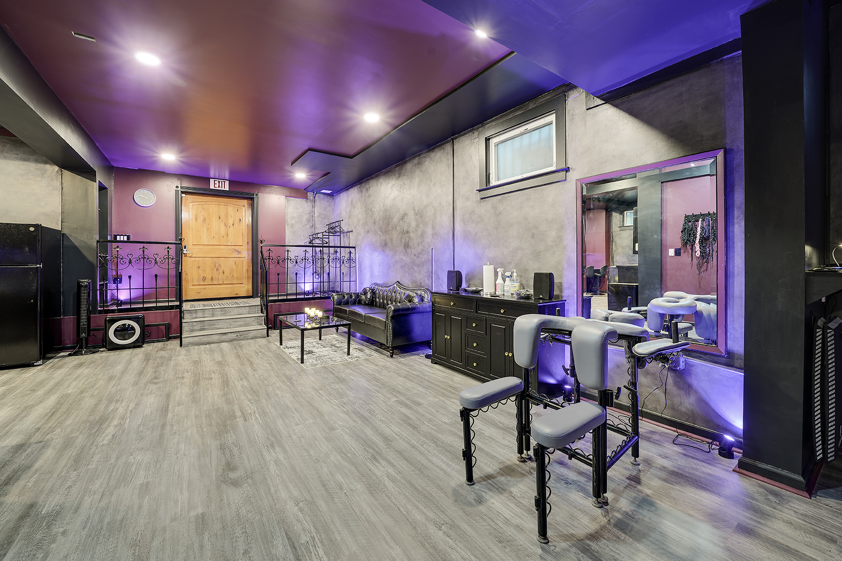Inner Sanctum offers an environment where creativity, exploration, and artistry can unfold. Whether you're planning an intimate scene, a complex suspension, or a striking photoshoot, the space provides the atmosphere and equipment to support it. Programmable lighting shifts the mood from dark and moody to vibrant and theatrical, while multiple music zones fill the space with sound. With concrete walls and its below-grade location, Inner Sanctum also provides exceptional sound insulation and privacy.